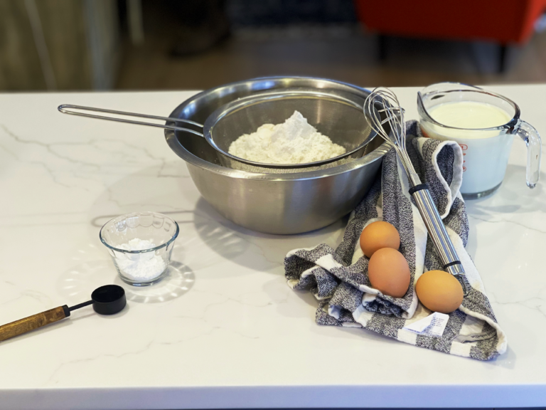 Making crepes is quick and easy! The only two things you must remember is to get the consistency of the mixture right and play around with the heat of the pan so that the pancakes don’t go too crispy but aren’t too light either. Otherwise, all you need is flour, eggs, milk, sugar, vanilla essence and butter. Let’s cook!